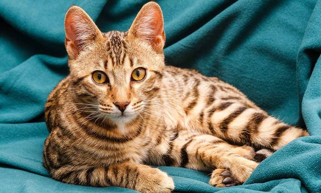 De origen asiático, el gato bengalí tiene un cuerpo robusto y musculoso. Su pelaje atigrado lo convierte en un cruce entre gato doméstico y gato leopardo. Es un felino curioso, cariñoso y de espíritu salvaje. Tiene un carácter fuerte y siempre le gusta estar activo.
